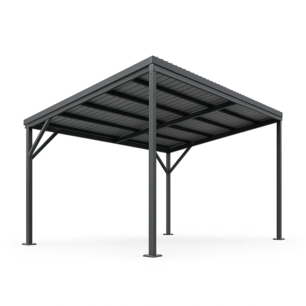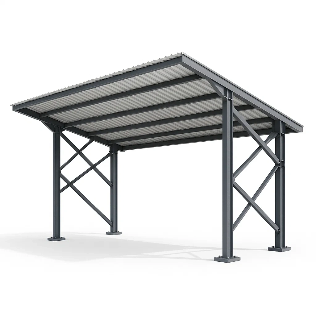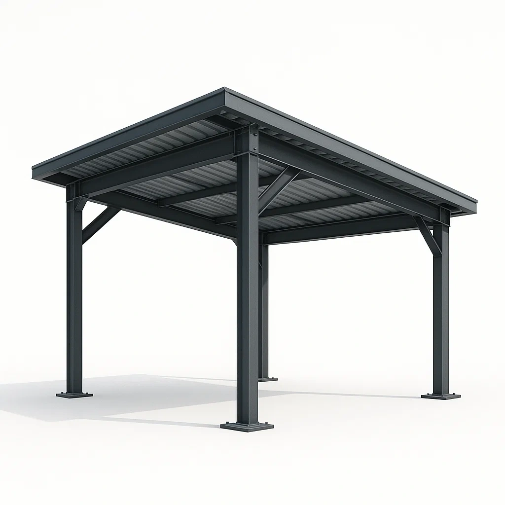 Tettoia per auto in struttura d'acciaio galvanizzato autoportante
