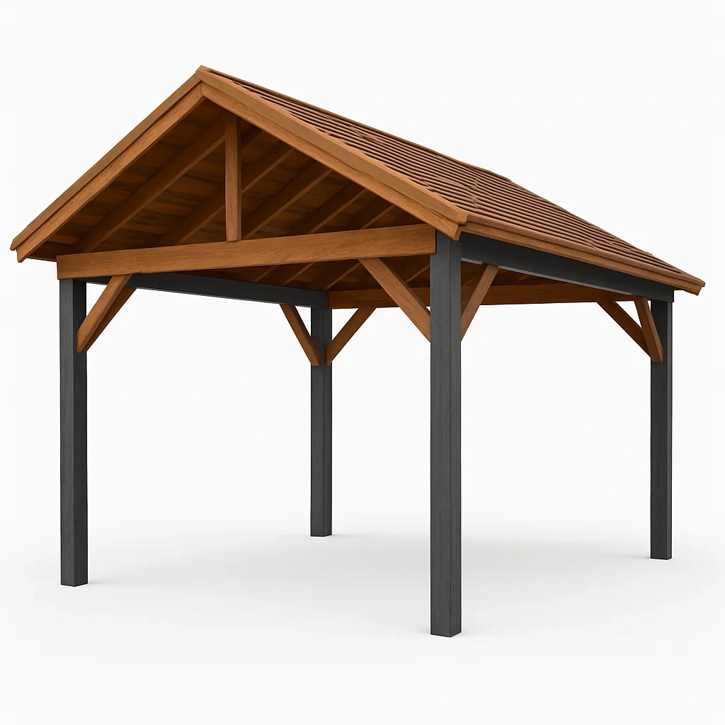 Padiglione in legno con tetto a doppia pendenza
