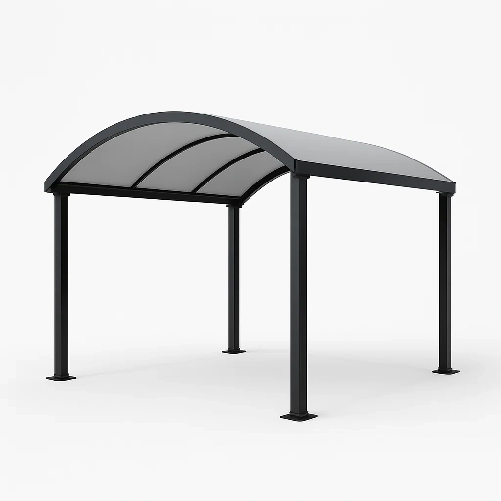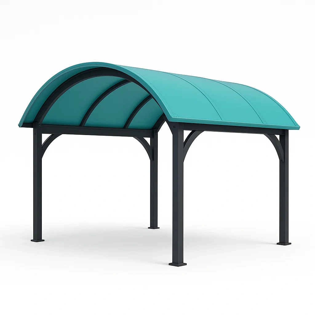 Tettoia per auto in struttura d'acciaio e policarbonato con struttura curva