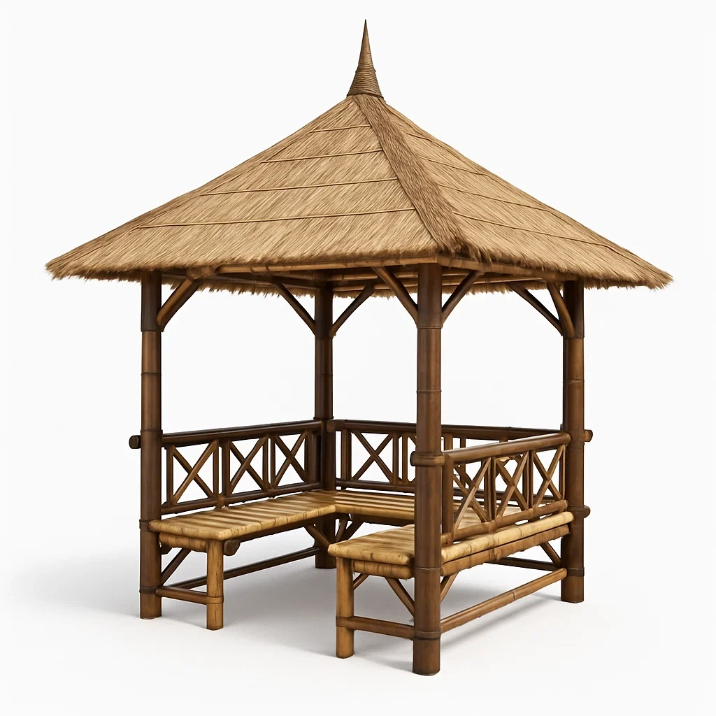 Padiglione in bambù con tetto in paglia